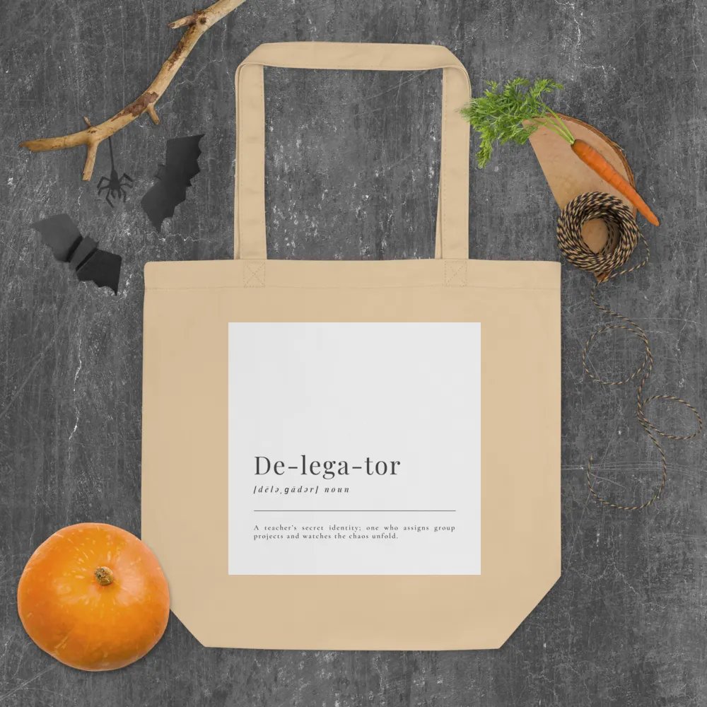"De-lega-tor" Eco-Friendly Organic Cotton Tote Bag